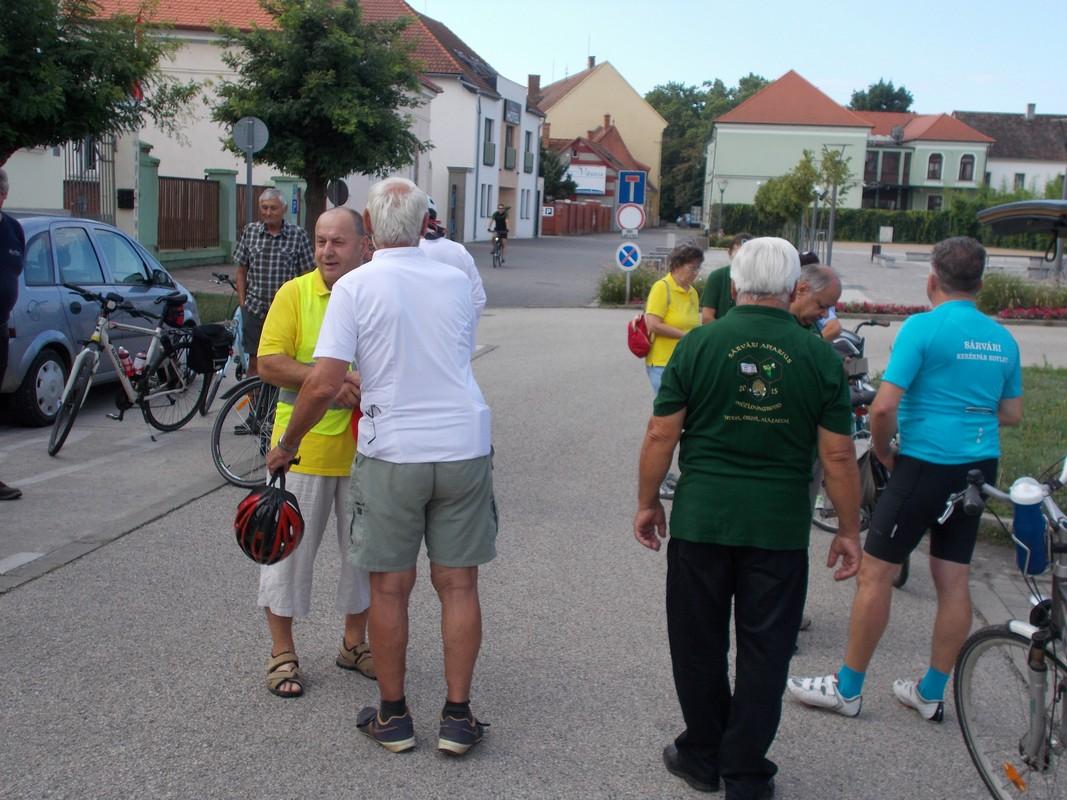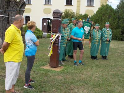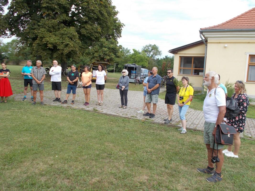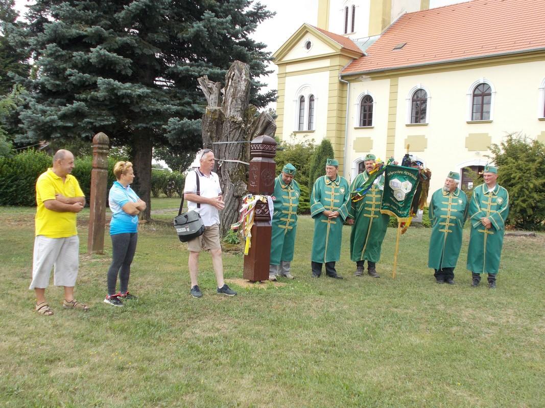 A túra reggel nyolc órakor indult. A lelkes kerekezők kicsivel több, mint egy óra alatt érték a templom udvarára. Egy kis falatozás, beszélgetés, és frissítők fogyasztása után, Makrai Attila, az Méhészegyesület elnöke üdvözölte a megjelenteket. A szót tőle Kelemen Balázs vette át, aki pár szóval bemutatta az Egyesület lovagrendjét, majd Szabó Ervin magáról a csöngei akácról beszélt. Azután Rozmán László, a hely nagy ismerője, és a társaság alkalmi idegenvezetője köszöntötte az egybegyűlteket, majd Wawrzsák Zsolt, a kerékpáregylet elnöke, Makrai Attilával közösen szalagot kötöttek a méhészek kopjafájára.