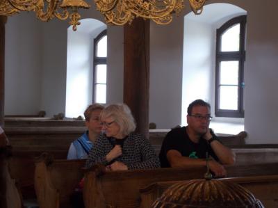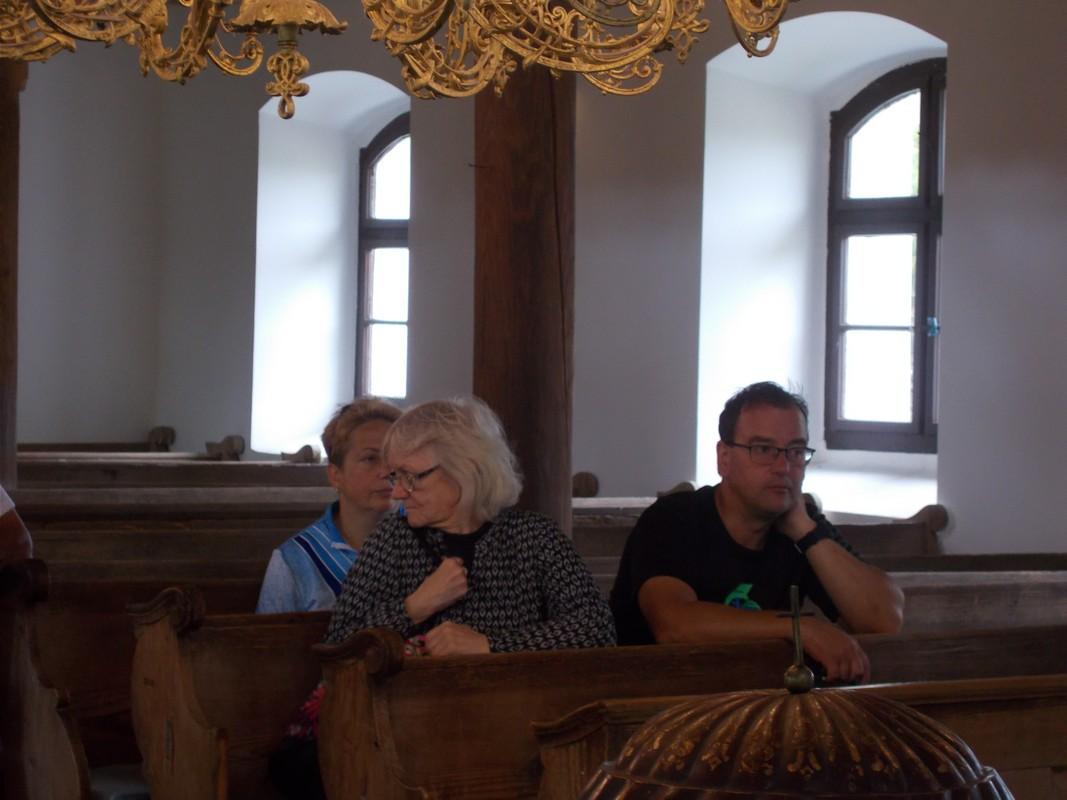 A ceremóniát követően a kerekezők, a templomot tekintették meg, ahol hajdan a falu nagy szülöttjét, Weöres Sándort is megkeresztelték. Tolnai Judit közös imára hívta a vendégeket, majd egy egyházi virágéneket dalolt el. Az előadás után a templom karzatán megnézték Petőfi Sándor bevésését, melyet latin nyelven tett meg. A magyar irodalom egyik géniusza 1839 körül járt Csöngén, ahol beleszeretett Csáfordi Tóth Rózába, de ez a szerelem viszonzatlan maradt. Pándi egy neves Petőfi kutató szerint, Petőfi itt Csöngén vált költőzsenivé.