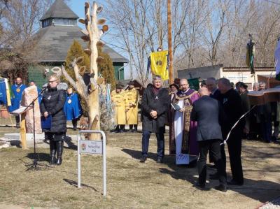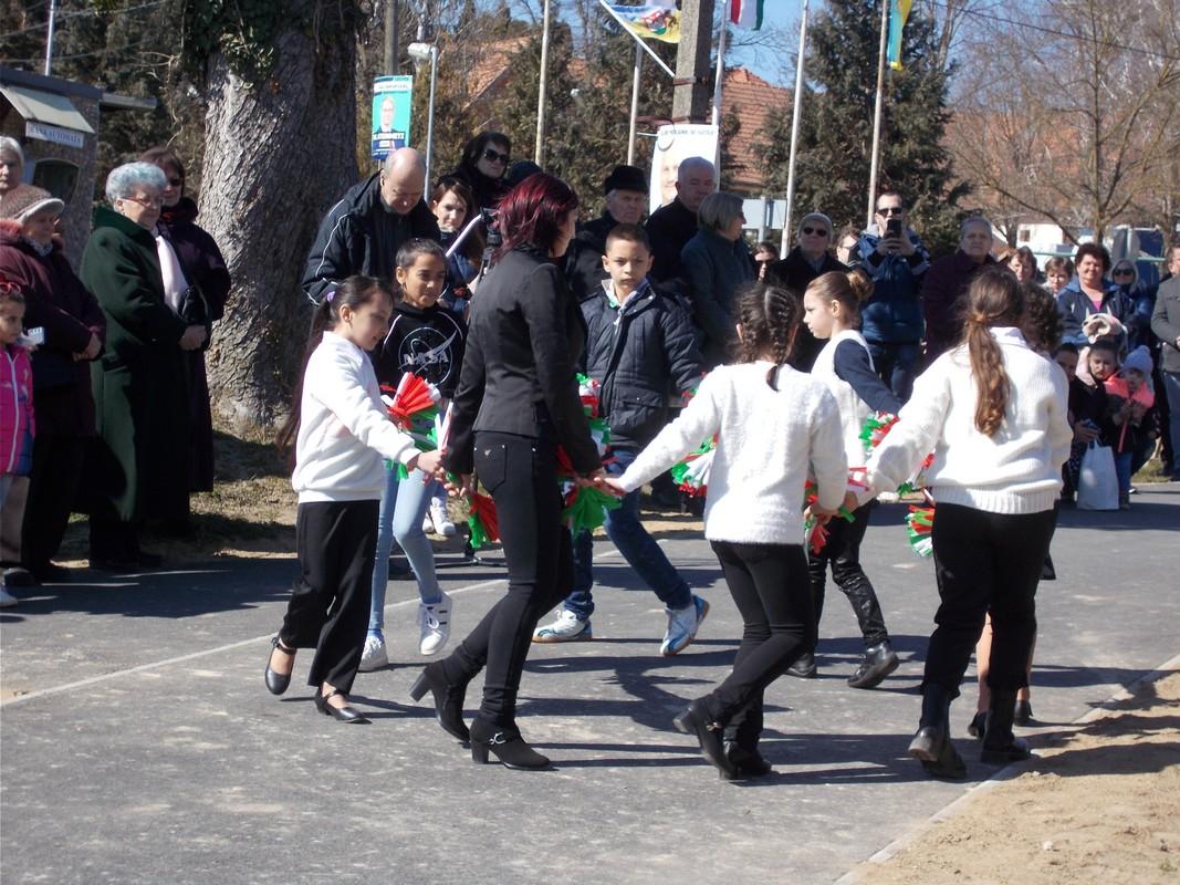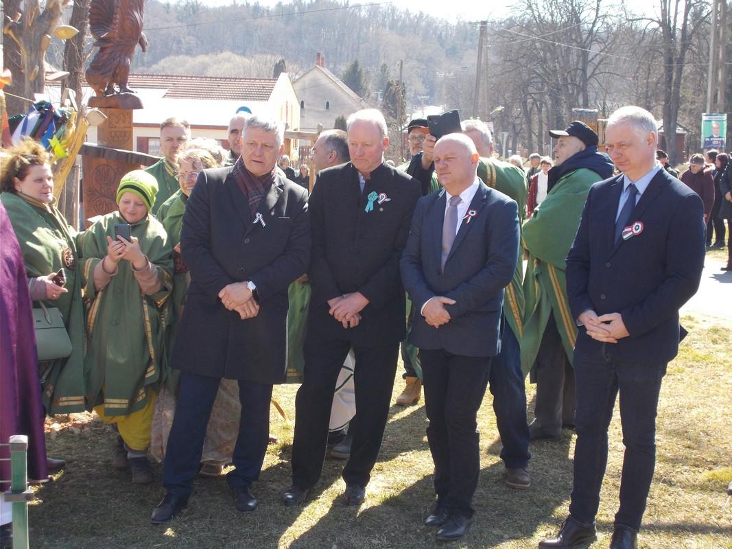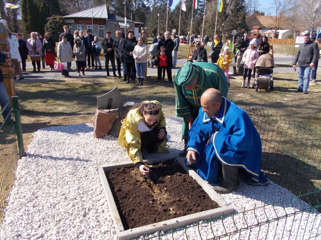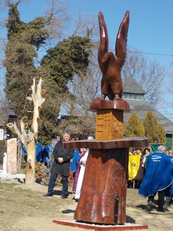Ezután a lovagrendek a falu templomába vonultak, ahol az ünnepi misén Móring József Attila képviselő úr orgonált. A szentmise után a vendégsereg a Prof. Dr. Sárközy Péter térre vonult, és ünnepélyes keretek között leleplezték a nemzeti összetartozás egyik szimbólumát a fából faragott turul szobrot, Réti László szobrászművész alkotását. A szobrot megáldotta Grujber Zsolt plébános. Ünnepi beszédet mondott Gyurákovics László polgármester, Móring István országgyűlési képviselő, valamint Grezsa István kormánybiztos úr. Az ünnepséget a helyi óvoda műsora zárta, majd Ozsváth Laura, Makrai Attila és Ballér István elültették az akácmagokat.