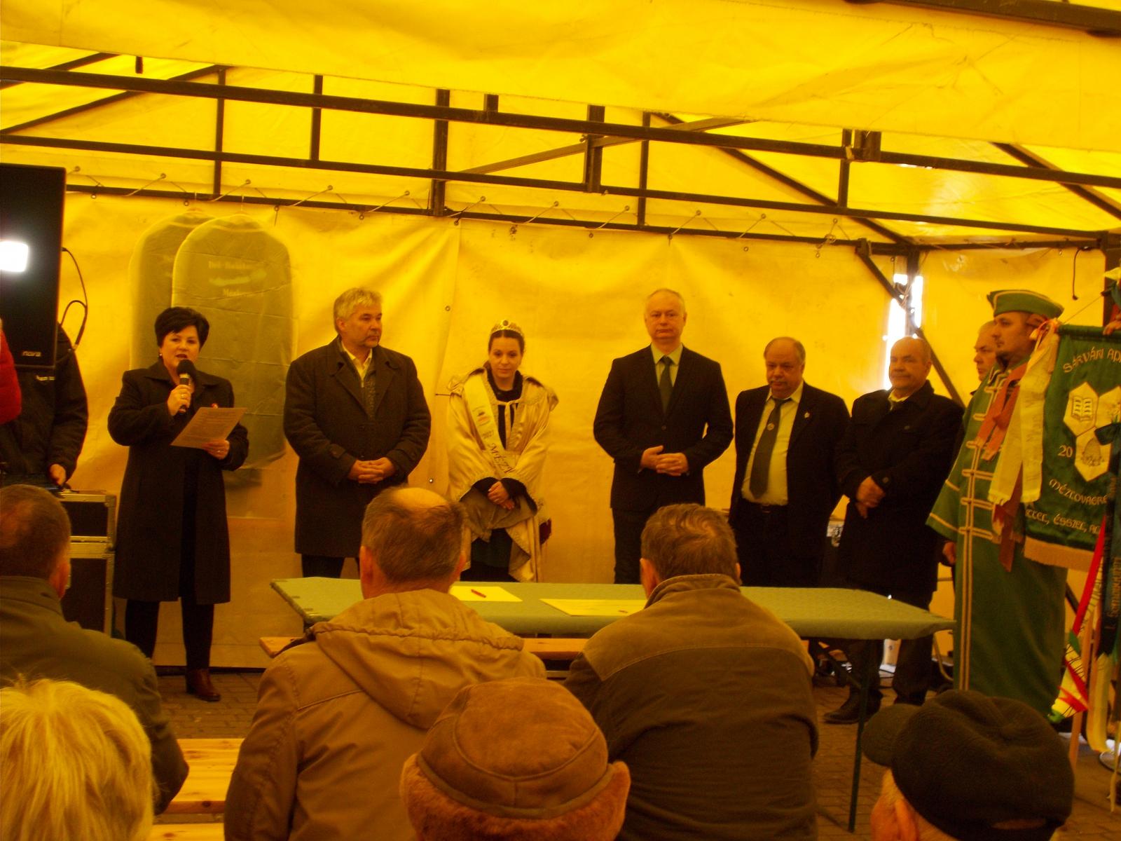 Az ünnepséget a jelenlevők köszöntése nyitotta meg. Gyurákovics László polgármester úr, Bross Péter elnök úr, Ozsvát Laura, Ballér István nagymester és Makrai Attila a Sárvár és Vidéke Méhészegyesület elnöke köszöntötte az egybegyűlteket, majd Bross Péter tartott egy rövid kis helyzetjelentést a méhészeti ágazat aktualitásairól, de előtte Horváth Antal kedveskedett egy kis ajándékkal a vendéglátó méhészeknek.